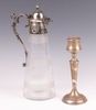 | 212 | A silver candlestick Birmingham 1925 on a circular base 21cm, marks rubbed, together with an Edwardian etched glass claret jug with silver plated mounts 29cm | 30-40 |