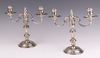| 107 | A pair of Queen Anne style filled silver candlesticks London 1980 and 1981 by Mills and Hersey, with associated twin branches London 1991, 22cm h, weighable silver (branches) 611 grams | 400-600 |