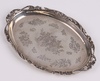 | 124 | An Edwardian oval engraved silver pin tray with pierced border London 1903 by William Cummings, 14cm x 9cm, 66 grams | 50-75 |