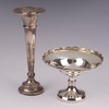 | 135 | A circular silver pedestal bowl raised on a spreading foot, Birmingham 1926, makers marks rubbed, together with a silver specimen vase Birmingham 1908 by Hayes & Co. 14cm | 50-75 |