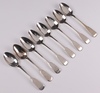 | 148 | Three George III silver fiddle pattern teaspoons London 1810, together with 5 various Georgian silver teaspoons, all Old English pattern and monogrammed, 122 grams | 80-120 |