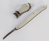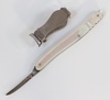 • A 2 bladed folding pocket knife with corkscrew marked Made in Germany, with mother of pearl effect grip, a folding knife the blade marked HBA with tortoiseshell effect grip 4cm, 1 other with B Company mark and mother of pearl grip 7cm, 6 folding knives and a pair of toenail cutters with mother of pearl mount