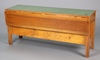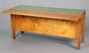 A 1930's rectangular oak drop flap office table with green writing surface, fitted 2 drawers and 3 recesses 77cm h x 168cm w x 52cm d (when folded down) 79cm d (flap open)