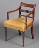 1001 An Edwardian Hepplewhite style mahogany open arm carver/desk chair on square supports with H framed stretcher 94cm h x 54cm w x 44cm d 40-60