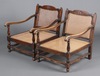 1016 A pair of 1930's beech framed single woven cane bergere armchairs, the cresting rails carved shells, raised on turned and block supports with wavy stretcher 76cm h x 61cm w x 75cm d 50-75