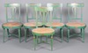 995 A set of 5 19th Century Continental green and gilt painted bar back chairs with lyre shaped slat backs and woven cane seats, raised on turned supports with H framed stretcher 85cm h x 49cm w x 43cm d 80-120