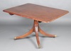 | 931 | A Georgian mahogany rectangular snap top breakfast table raised on reeded tripod supports, brass caps and casters 70cm h x 121cm w x 96cm d | 60-80 |