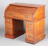 | 933 | A Victorian walnut cylinder bureau, the interior fitted pigeon holes and 4 short drawers, the base fitted 6 short drawers with embossed metal drop handles 97cm h x 106cm w x 59cm d | 50-75 |