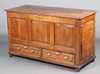 | 940 | An 18th Century oak mule chest of panelled construction, the base fitted 2 drawers with replacement drop handles, raised on bracket feet 83cm h x 143cm w x 59cm | 150-200 |