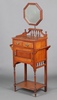 | 945 | A Victorian walnut wash stand with octagonal bevelled plate mirror and towel rail to each side, the base fitted 2 short drawers above a cupboard enclosed by a panelled door, above a recess, raised on turned supports 157cm h x 49cm w x 34cm d | 50-75 |