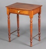 | 949 | An Edwardian oak and walnut side table fitted a drawer with brass handle, raised on turned supports with turned stretchers 76cm h x 61cm w x 43cm d | 40-60 |