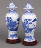 | 712 | A pair of 1920's Chinese blue and white vases with covers, decorated landscapes, the base with 4 character mark 27cm | 50-75 |