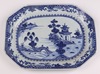 | 709 | A Nanking octagonal blue and white meat plate decorated figures on a bridge by a pagoda 35cm | 50-75 |
