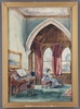 British School, Lady at a Table (probably Emily Buxton) in the Interior of Foxwarren Park, Surrey, 19th century watercolour, inscribed verso with Hyde Park Gallery label, 25cm x 17cm, within a gilt frame.