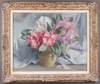Philip Lambe, Still Life with Flowers in a Vase, mid-20th century oil on canvas, signed recto, Sheengate Galleries label verso, 39cm x 49cm, within a painted and gilt composition frame.