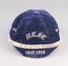 | 470 | Two early 20th Century Rugby / Football caps in blue cloth with gilt braiding, one the crown with braided lettering "1918 M.C.F.C 1919" (possibly Manchester City Football Club), the brim lettered "1917 - 1918", the other in blue cloth with gilt braiding, the crown with braided lettering "1918 1919", divided by a gilt logo of a Saltire beneath a Crescent, the brim lettered "1918-1918", both with label to interior "Aitken and Niven, 40 Queensbury St, Edinburgh" | 100-150 |