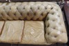 A pair of 19th Century Continental gilt painted stick and rail back salon chairs with woven cane seats, the backs decorated a flaming torch, on square supports 99cm h x 43cm w x 43cm d