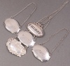 | 262 | Four embossed silver decanter labels - Port, Sherry, Whisky and Sherry, dated London 1962, 1963, 1964 and 1967 | 50-75 |