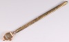 | 428 | A lady's Mepa 18ct gold cased wristwatch with rectangular dial, Arabic numerals and gilt metal bracelet | 50-70 |