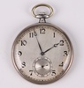 | 429 | A Longines open faced dress pocket watch with silvered dial and Arabic numerals, the movement numbered 4012133, the case marked EFCO Longines | 100-140 |
