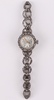 | 435 | A lady's Art Deco platinum and diamond set cocktail wristwatch with rectangular dial and Arabic numerals, with leather strap | 200-300 |