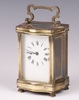 | 437 | Garrard & Co., a 20th Century carriage timepiece with enamelled dial Roman numerals, the back plate marked Made in England, 11 jewels, complete with key. 11cm h x 8cm w x 6cm d | 50-75 |