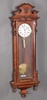 | 448 | A Victorian regulator style wall clock with 16cm circular enamelled dial, Roman numerals, subsidiary second hand, complete with pendulum, weight and key, contained in a carved oak case 124cm h | 40-60 |