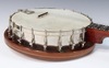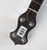 • A Sully four stringed tenor? banjo with turned and inlaid wooden frame, complete with carrying case