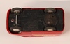 A Triang child's pressed metal pedal car in the form of a Daimler, with opening side door, windscreen, disc wheels with rubber tyres, 50cm h x 90cm l x 51cm w