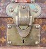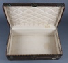 Louis Vuitton, a 1920's Louis Vuitton twin handled cabin trunk with fitted and fabric lined interior, the internal lock stamped with the serial number 206866, the interior with Louis Vuitton label, 149 New Bond Street London, the interior tray missing 2 dividers, 33cm h x 54 cm w x 54cm d, fragment of old paper label to the top, fragments of luggage labels to both sides and front, the brass handles to the side marked Rue Scribe Paris Louis Vuitton, 149 New Bond Street, Made in France Provenance - the trunk was purchased by the vendors father in late 1959 from the Waterloo Station Lost property, for the sum of approx 10 pounds. It was then used to for his travels on cruise ships around Miami, Cuba, Haiti, and the Caribbean in general as he was the owner of a Cruise ship Photography Co. then known as Jalcruise. When he set up in Manhattan, New York it was used as storage in the apartment, until our return to the UK in 1963. He continued to use it for his travels on cruise ships and even by car to Europe. He retired the trunk, so to speak in 1979 as he felt that it had done its job and didn't want it too travel damaged. He then used it to store photographs up until his death 16 years ago.