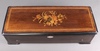 A 19th Century Swiss musical box with 33cm cylinder playing 10 aires, having original paper label to the interior of the lid, contained in an inlaid rosewood case 15cm h x 62cm w x 24cm d