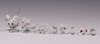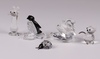 | 696 | A Swarovski Crystal figure of a mouse 4cm, ditto butterfly 5cm, hedgehog 5cm, 5 miniature figures of a bird, penguin, owl, clam, cat and bird 4cm together with a glass stand and 3 mirrored bases | 40-60 |