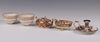 646 | Two 18th Century Derby white and gilt glazed tea bowls 5cm (both cracked), a Derby Imari pattern chamber stick 8cm (handle cracked missing snuffer), an oval Derby twin handled bowl 8cm (missing 1 handle) and a Spode oval Imari pattern pot pourri and cover 967 7cm | 40-60 |