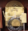 Berringer & Co. Truro, a 19th Century wheel barometer and thermometer with damp/dry indicator, thermometer, mirror and spirit level, contained in an inlaid mahogany case 94cm h