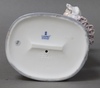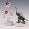 A Beckhurst coloured glass group of birds amongst flowers on a marble base 28cm, together with a ditto figure of a standing baby elephant on a white marble base 13cm, ditto of flowers 17cm