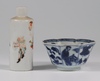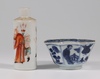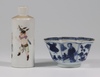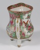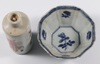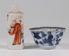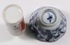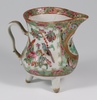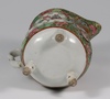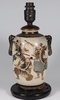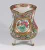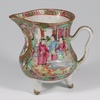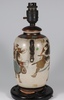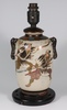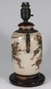 A Japanese Satsuma pottery vase decorated warriors converted to a table lamp 23cm, a Canton famille rose jug of waisted form raised on 3 feet 9cm (cracked), a Chinese blue and white octagonal tea bowl with panel decoration of figures 4cm (some chips to the rim), a miniature Rollo vase decorated courtly figures 8cm