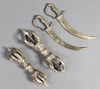A carved soapstone seal decorated Dog of Fo 6cm, 2 shaped pierced soap stone vases 10cm (chips in places) and 3 carved bamboo brush pots decorated figures 15cm £30-40