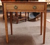 An 18th Century bleached mahogany side table fitted a frieze drawer with brass swan neck drop handles, raised on square tapered supports 73cm h x 74cm w x 48cm d