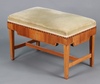 A 19th Century bleached mahogany side table fitted 3 short drawers with replacement handles, raised on square tapered supports with box framed stretcher 75cm h x 103cm w x 52cm d