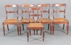 | 955 | A set of 5 William IV carved and inlaid rosewood bar back dining chairs with shaped mid rails and woven cane seats, raised on turned and reeded supports 83cm h x 46cm w x 42cm d | 60-80 |
