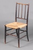 | 957 | William Morris, an ebonised elm Sussex stick and rail back chair with woven rush seat, raised on turned supports 86cm h x 40cm w x 34cm d | 50-75 |