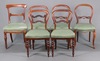 | 965 | A harlequin set of 5 Victorian balloon back dining chairs, three rosewood with turned supports, two mahogany on cabriole supports, all with overstuffed seats together with a bar back chair (upholstery damaged) | 50-75 |