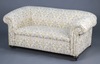 | 968 | A Victorian 2 seat drop arm Chesterfield sofa upholstered in green and white floral patterned material 61cm h x 146cm w x 76cm d | 80-120 |