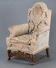 | 971 | A 1930's Queen Anne style armchair upholstered in tapestry material, raised on cabriole supports with pierced wavy stretcher 116cm h x 73cm w x 70cm d | 40-60 |