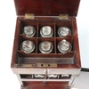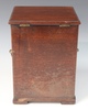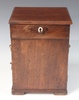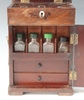 A Georgian mahogany apothecaries cabinet, the hinged lid revealing 6 panel cut bottles, the cupboard to the front fitted 4 later bottles, compartmented drawer with sliding lids and 1 other long drawer with ivory escutcheon and brass swan neck drop handles to the sides 24cm h x 18cm w x 16cm d Ivory Exemption Certificate JPKEES4E £100-150