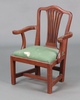 | 1000 | A child's Georgian style mahogany open arm carver chair with pierced vase shaped back, upholstered drop in seat, raised on square supports with H framed stretcher 61cm h x 47cm w x 31cm d.. The back with silver plaque marked "This chair is a copy from one owned by John Gurney of Eartham and was used by his children, given to his Great Granddaughter Alexander Buxton Christmas 1910" | 40-60 |