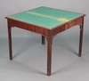 A George III rectangular mahogany cantilever card table, raised on chamfered supports with pierced brackets to the tops of the legs 74cm h x 90cm w x 44cm d