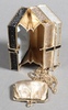 Judith Leiber, a lady's clutch bag in the form of 3 books 13cm x 8cm x 6cm with purse and a Judith Lieber oval clutch bag 10cm x 4cm x 6cm containing a gilt metal hand mirror, both with outer cloth bags, together with a Glomesh silver coloured evening bag £60-80