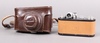 An Olympus Pen F T Half Frame Camera, serial no 160032, in associated Olympus shaped leather hard case, shutter working, with F Zuiko 38mm f/1,8 lens, no. 126741, an Olympus Pen-F 35mm Half frame camera with Zuiko Auto-S 40mm F/1.4 lens, no.144808, an Olympus Pen EED camera with F Zuiko 32mm f/1.7 lens, an Olympus E Zuiko Auto-W 25mm 1:4 lens (cased) together with several lenses and accessories