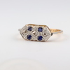 | 55 | An 18ct yellow gold ring set 4 sapphires supported by diamonds, size Q, 3.9 grams | 200-250 |